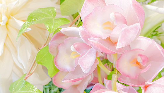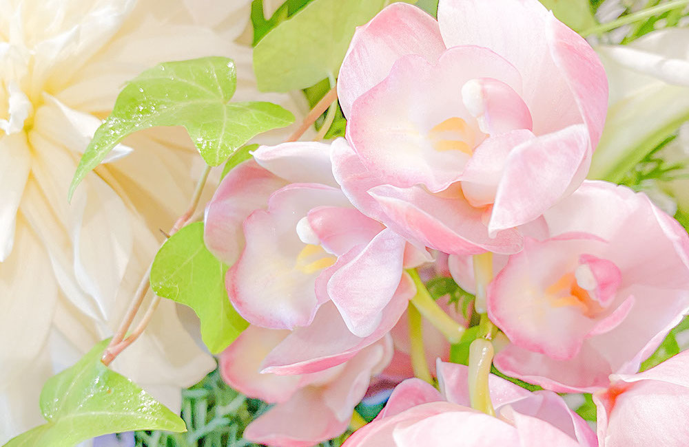ブライダルブーケ、ブートニア、装花、フラワーシャワーまでお花で溢れたあこがれの挙式をカタチにします。